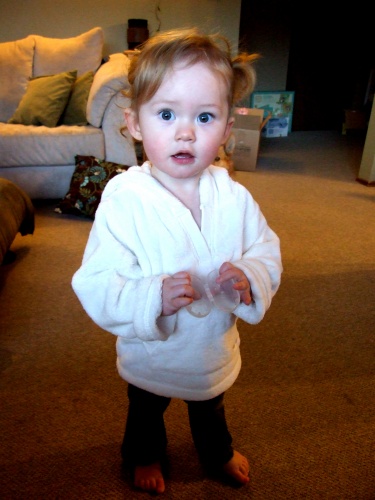 Avelyn has lost a little weight while being ill and her legs look like a pirate’s pegs.