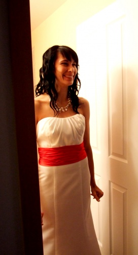 On the morning of the wedding she slipped into her dress and I was overwhelmed by her beauty and grace. She was a vision in white, with a scarlet sash.
