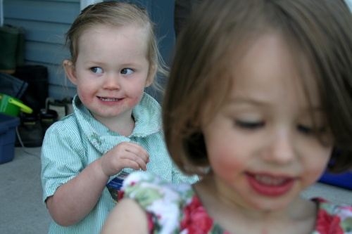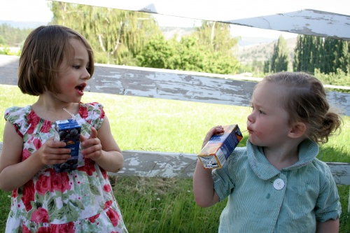 Last night we celebrated the third birthday of Camille, one of Avelyn’s favourite “big kid” friends. The party was a hit and there were dozens of wild children running around the yard, inhaling potato chips, chasing balloons and smearing cake all over their shirts. The highlight for Avelyn, however, was the juice. She’s not used to juice, straight up. I usually water it down half and half for her so she’s not getting too much sugar in the day. But when she saw that the juice boxes were just sitting in a cooler, and a cooler that was easily pried open by her grubby little hands, she went nuts.