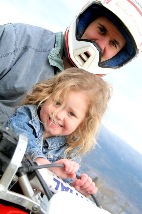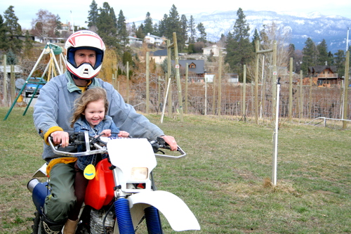 I think Avelyn wants a sidecar on that dirt bike………for her dad.