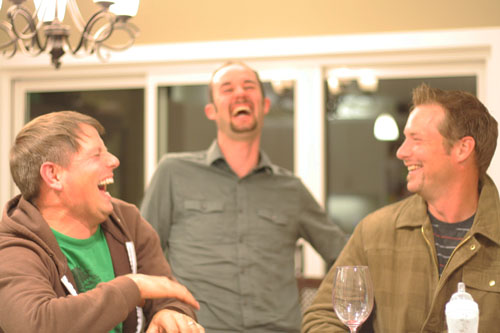 So glad you guys had such a great visit! Also, love the last photo with the guys – totally looks like Jay is double fisting it, wine in one hand, baby bottle in the other. :-)