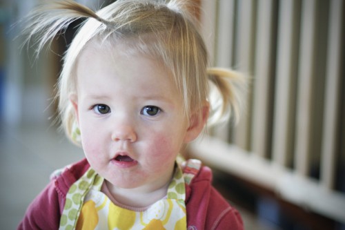 Baby. Quick to laugh, drool-soaked, enjoys cuddles at 3 am, hates sitting in high chair, likes peanut butter toast and baby dolls, sprigs of ponytails to harness her epic mullet.