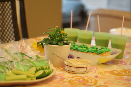 The dolphin is out! Must mean it is a party at the Kickyboots home! Love the green things. I was trying to tell my 3.5 year old about green food on St. Patricks Day and he stared and me and thought I was ridiculous hehe.
