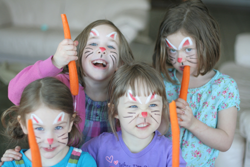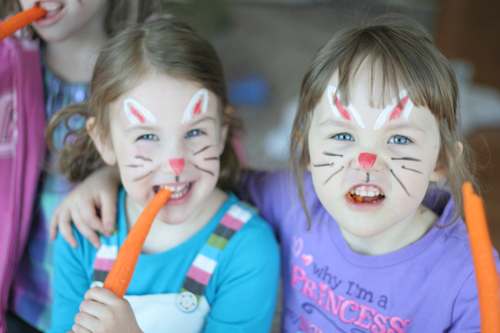 Um. SO CREEPY. That is some amazing face paint, though, and healthy snacks to boot! And the easter egg thing? Genius.