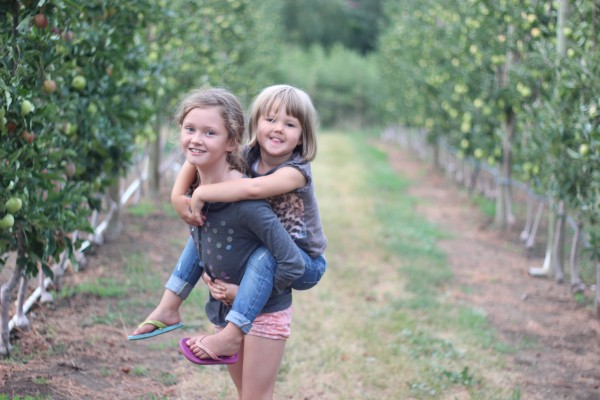 After a burnt dinner, I scowled and put the dishes away, tidying up the relentless mess and feeling worn. Then the evening light grew warm, I chilled out a bit and The Grump lifted, almost magically. Steve had to run an errand and took Karenna out with him; it’s amazing the way the dynamics shift when just one child is removed from the situation. I grabbed my camera and started snapping some photos of Avelyn and Brin in the orchard and it was just what I needed to take a deep breath, see the beauty around me and just soak it up.