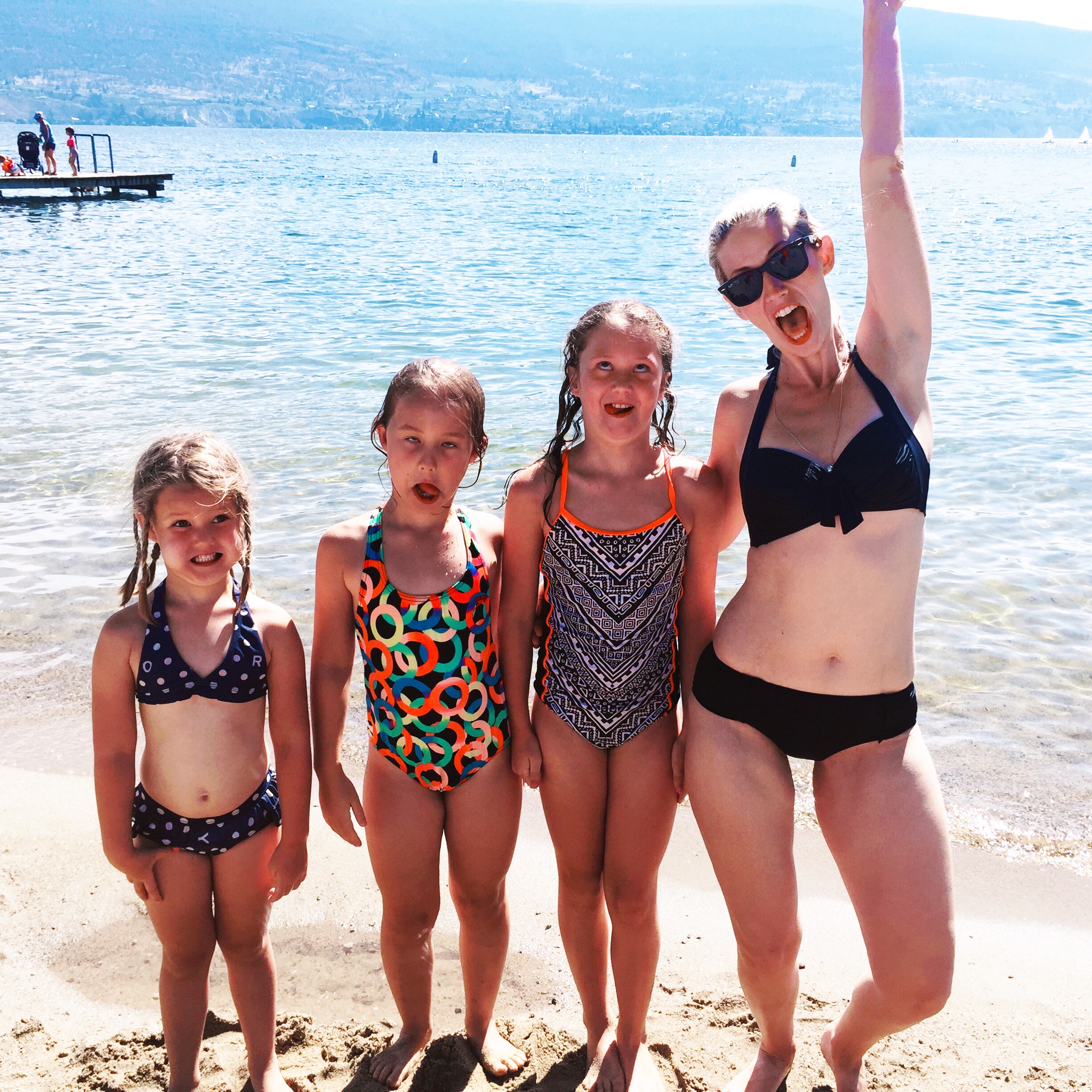 It’s summer. And things are busy but we’re hanging in. This year I have enlisted the help of an amazing summer nanny who comes on Mondays, Wednesdays and Fridays from 9 am – 4 pm and I am doing my best to consolidate my work to those days (which is harder than it sounds, but I’m trying!) and then get out with the kids and have some fun on those off days. Yesterday we hauled our butts to the beach and we jumped off the dock and I sunburned my sagging bosom and it was really fun.